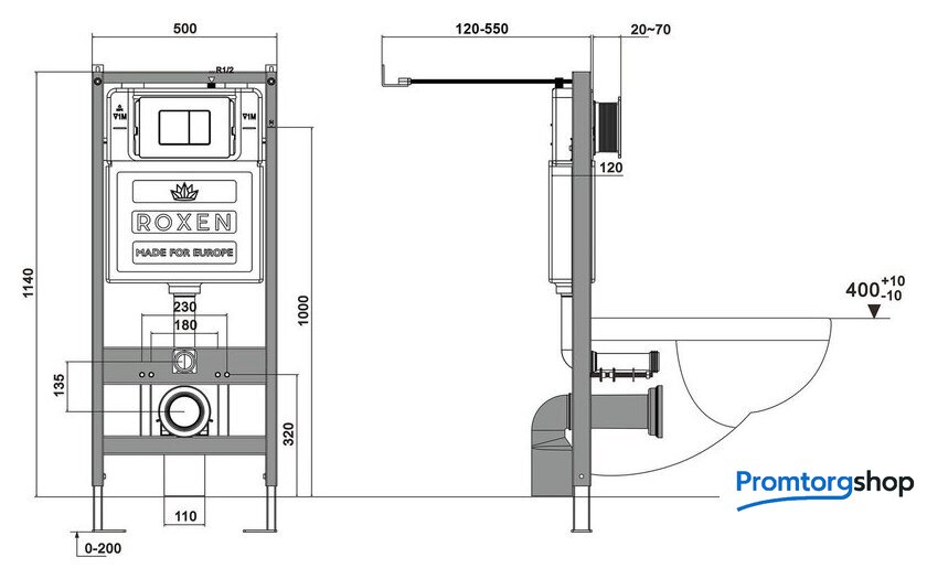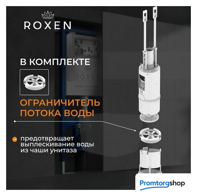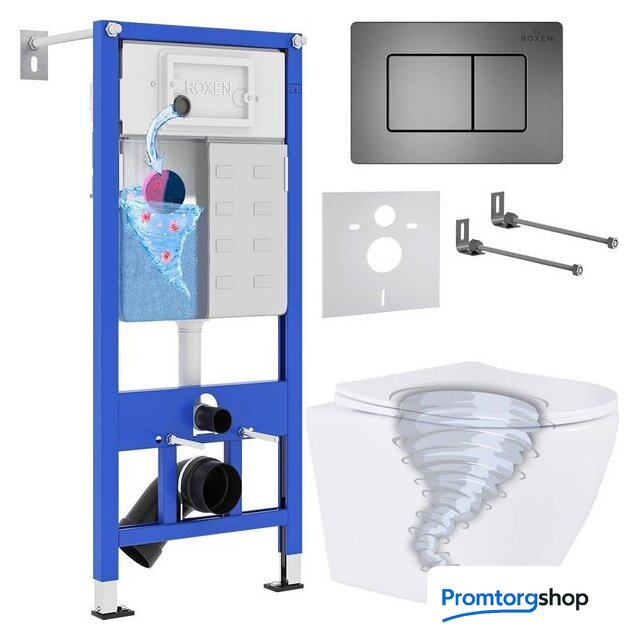 Унитазы Roxen Roxen Antares Tornado Long в комплекте с инсталляцией StounFix Dual Fresh 6 в 1 868441 (кнопка: оружейная сталь матовая) Код товара: 11595852