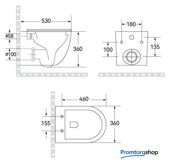 подвесной, конструкция: без бачка, двухрежимный слив по цене 853,00 руб.