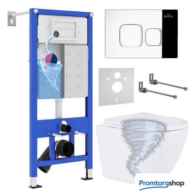 Унитазы Roxen Roxen Antares Tornado в комплекте с инсталляцией StounFix Dual Fresh 6 в 1 968385 (кнопка: хром глянцевый) Код товара: 11011285
