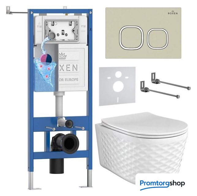 Унитазы Roxen Roxen Vine Tornado в комплекте с инсталляцией StounFix Dual Fresh 6 в 1 979018 (кнопка: бежевый) Код товара: 11198644
