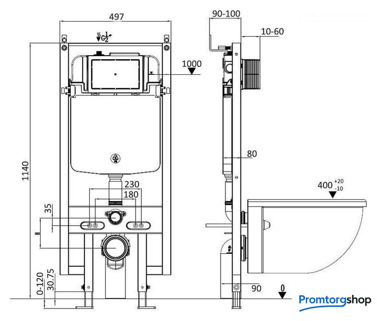 | Отверстия под инсталляцию | 180 мм |