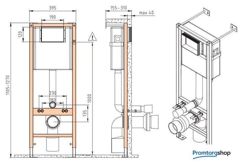 | Отверстия под инсталляцию | 180 мм |
