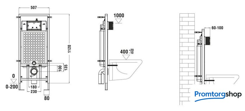| Отверстия под инсталляцию | 180 мм |