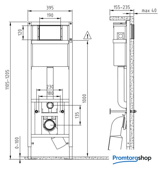| Отверстия под инсталляцию | 180 мм |