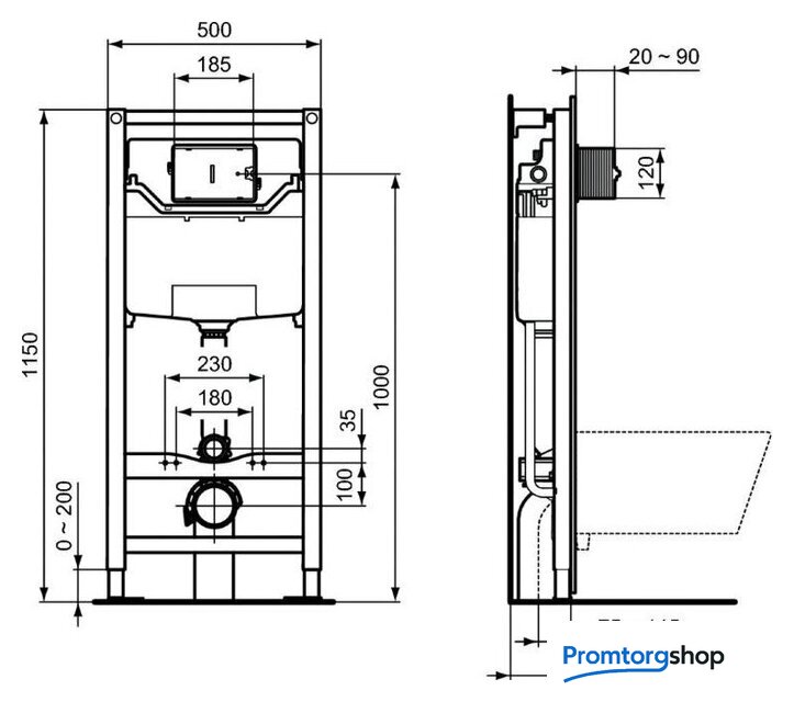 | Отверстия под инсталляцию | 180 мм |