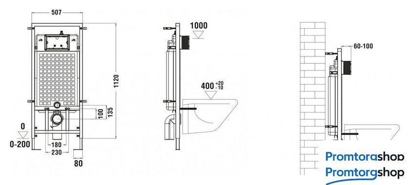 | Отверстия под инсталляцию | 180 мм |