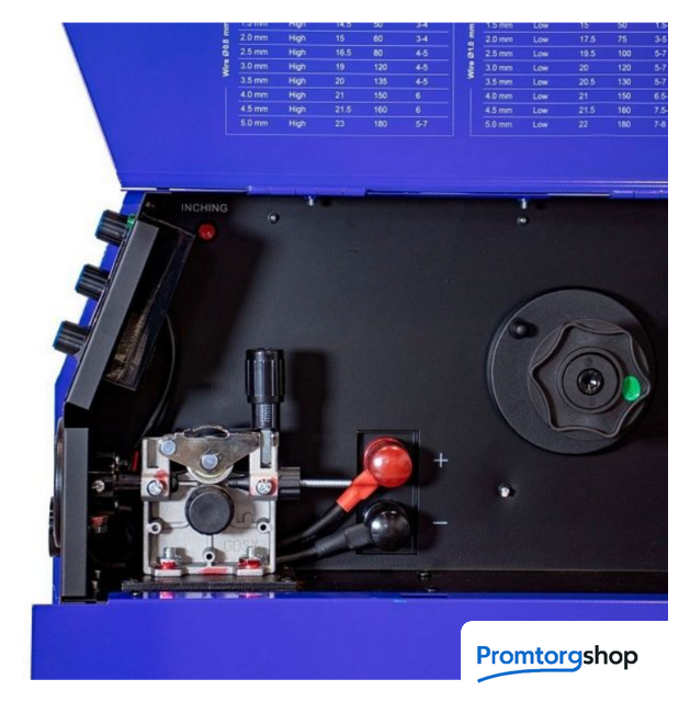 | Диаметр проволоки | 0.6 - 0.8 - 1.0 мм. Скорость подачи проволоки 2-15 м/мин |