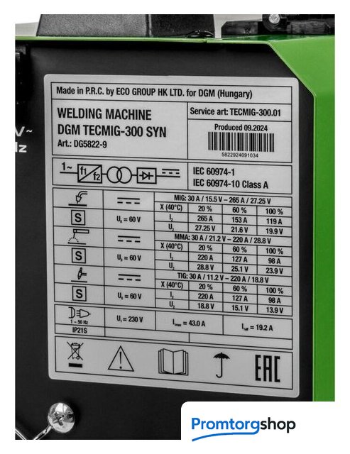 Назначение | ручная дуговая сварка (MMA), полуавтоматическая сварка (MIG MAG FCAW), аргонодуговая сварка (TIG) |