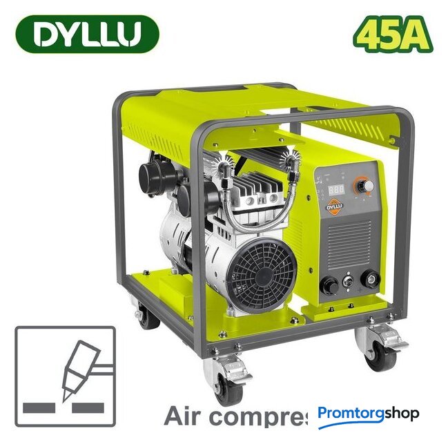 Комплект поставки | - Инверторный плазморез - 1 шт.- Безмасляный компрессор – 1 шт.- Инструкция- Деревянный ящик |