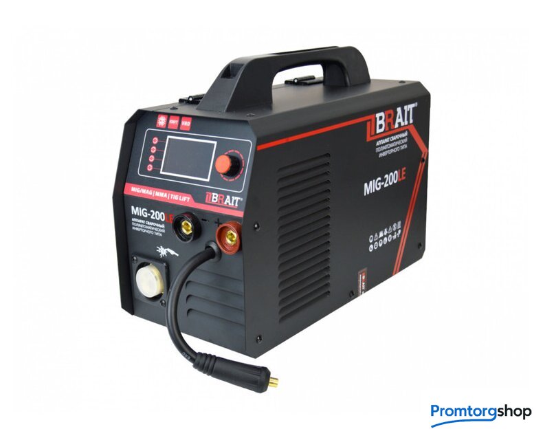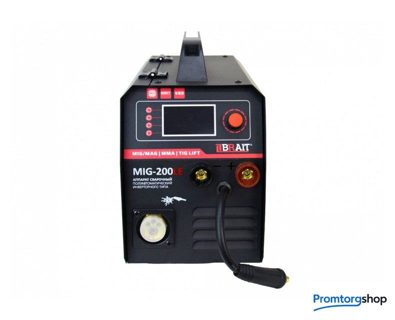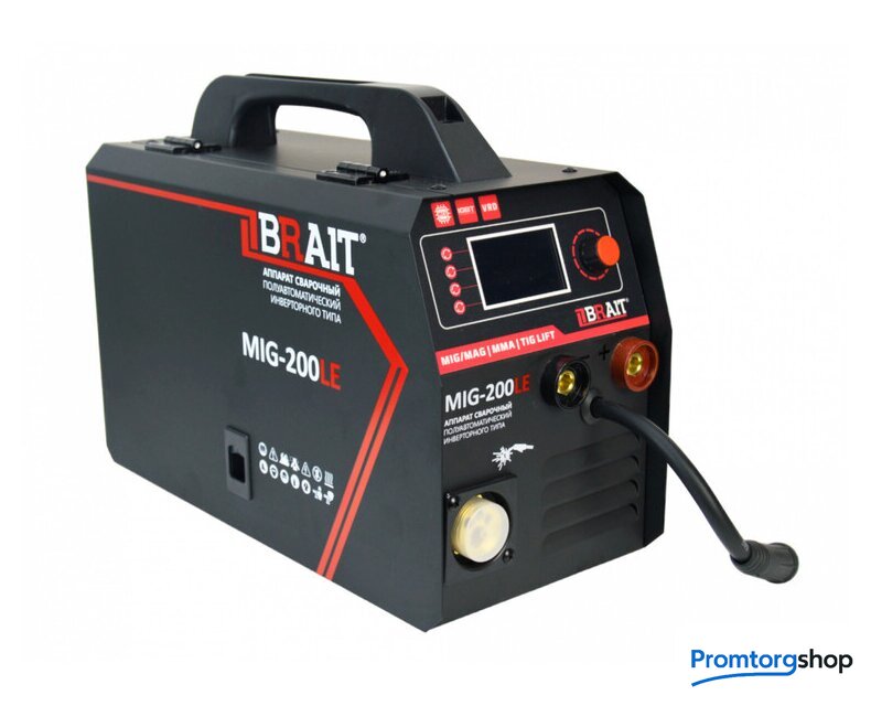 Назначение | Инвертор сварочный полуавтомат MIG-200LE — это многофункциональный сварочный аппарат инверторного типа. Данную модель используют для проведения ремонтных работ в мастерских или для использования в бытовых условиях. Компактные размеры и небольшой вес делают аппарат весьма портативным, поэтому его удобно использовать в условиях ограниченного пространства или там, где воспользоваться громоздкой моделью не представляет возможным. |