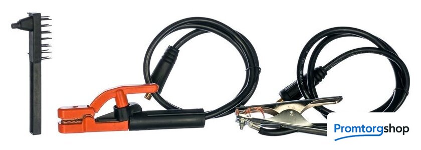 | Комплект поставки | Источник сварочного тока — 1 шт.Электрододержатель с кабелем (кг 1х20 мм2) — 1 компл.Зажим на массу с кабелем (кг 1х20мм2)- 1 компл.Щетка — 1 шт.Щиток со стеклом — 1 шт. |