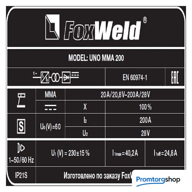 Изготовитель: ООО «Фоксвелд Рус», бул. Чонгаский, д. 1, корм. 2, к. 72, г. Москва, РФ