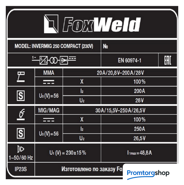 FoxWeld INVERMIG 250 COMPACT 400В SYN / 9621