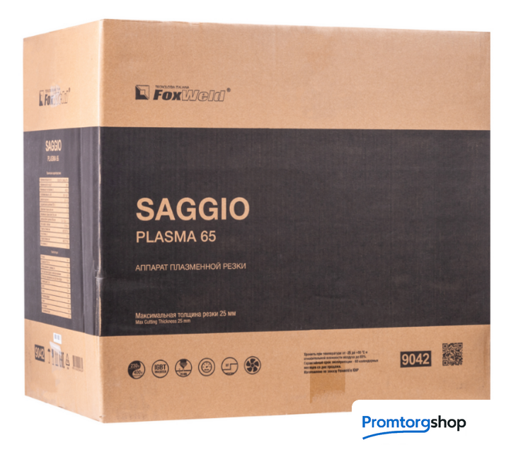 | Комплект поставки | Аппарат плазменной резки SAGGIO PLASMA 65 – 1 шт.; • Плазмотрон P-80, 4 м – 1 шт.; • Кабель заземления с зажимом, 3 м – 1 шт.; • Узел подготовки воздуха со скобой для крепления – 1 шт.; • Штуцер для подсоединения узла подготовки воздуха – 2 шт.; • Газовый шланг, 2,4 м – 1 шт.; • Насадка пружинная – 1 шт.; • Катод – 2 шт.; • Сопло – 2 шт.; • Роликовая насадка – 1шт.; • Хомут – 4 шт.; • Инструкция – 1 шт.; • Гарантийный талон – 1 шт. |