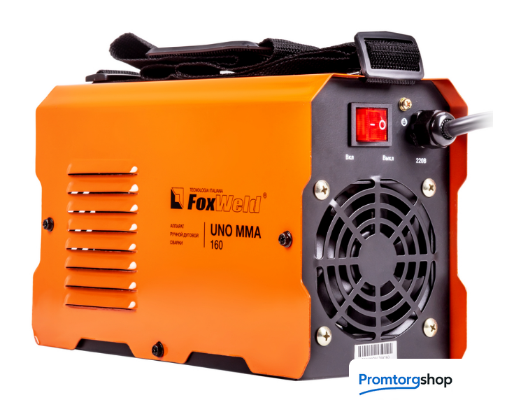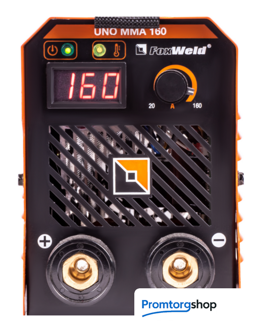 | Назначение | MMA. Сварочный аппарат FOXWELD UNO ММА 160 предназначен для ручной дуговой сварки (ММА) любыми типами электродов и выполнен по новейшей IGBT технологии, позволяющей добиться минимального веса и габаритов. Продолжительность включения аппарата до 100% даст возможность сваривать без перерыва длительное время. Источник питания отличается надежностью, хорошими техническими характеристиками, имеет программно-установленные функции Нot Start (горячий старт), Arc Force (форсаж дуги), AntiSticking (антиприваривание) и устойчиво работает при понижении напряжения сети, что делает аппарат более универсальным и практичным. Металлический корпус защищает оборудование от ударов, а его разборная конструкция позволяет легко обслуживать аппарат. Дисплей на передней панели показывает сварочный ток, что упрощает настройку аппарата. РАБОТА БЕЗ ОСТАНОВКИ ПВ 100% на максимальном токе обеспечивает бесперебойную устойчивую работу на протяжении всего трудового дня. РАБОТА ПРИ ПОНИЖЕННОМ НАПРЯЖЕНИИ Аппарат работает от однофазной сети 220 В при перепадах напряжения от 160 до 270 В. Это даёт возможность производить сварочные работы в «плохих» сетях – на даче, в домашних условиях при пониженном или нестабильном напряжении. ЦИФРОВОЙ ДИСПЛЕЙ Цифровой дисплей на передней панели показывает силу сварочного тока, что упрощает настройку аппарата. НЕБОЛЬШОЙ ВЕС Небольшой вес и размеры сварочного аппарата плюс ручка на корпусе добавляют мобильности, компактности и идеально подходят для бытового и полупрофессионального использования. Преимущества: Мощные, надёжные байонеты размером 35-50 позволяют с минимальными потерями снять всю мощность сварочного тока Функции Горячий старт (Hot Start), Форсаж дуги (Arc Force) и антизалипание (Antisticking) Аппаратом комфортно работать даже при сварке тонкостенных поверхностей ПВ при температуре окружающей среды в 25 °C с током в 160 ампер составляет 100% в обоих режимах сварки Перемещение аппарата осуществляется за счёт наплечного ремня Небольшой вес и габариты Сварочный аппарат может работать от генератора мощностью не менее 6 кВт |