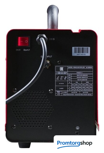 Максимальный сварочный ток | 200 А (MMA: 180; TIG: 200) |