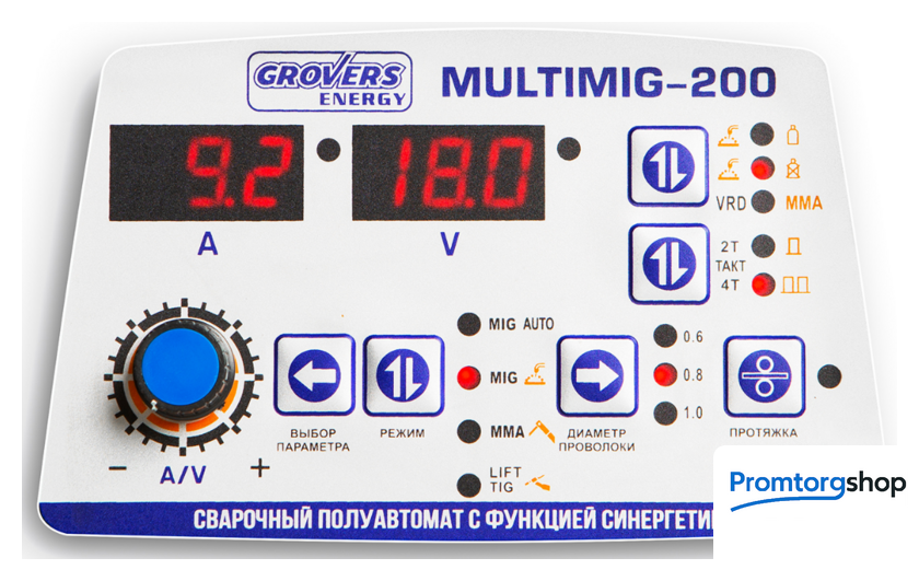 Назначение | MIG/MAG, MMA. Описание Автоматическая настройка параметров сварки - Синергетика Устойчивая работа при напряжении сети от 160В. Компактные размеры, высокая производительность. Стабильная работа на смеси и на CO2. Надёжный мощный подающий механизм Холостой прогон и дожигание сварочной проволоки. Сварка как в ММА - штучным покрытым электродом так и TIG LIFT Регулировка индуктивности - мягкости жесткости дуги 2Т/4Т тактный режим работы Полуавтомат ENERGY MULTIMIG-200 - это удобный и надёжный инструмент для сварочных работ. А наличие в аппарате синергетики делает удобным сварку даже новичку! Инверторы осуществляют качественную сварку любых сталей. Классическая панель управления позволит быстро освоить работу даже начинающему сварщику. Аппарат ENERGY MULTIMIG-200 отличается компактностью и малым весом. В то же время аппарат демонстрирует реально высокое ПВ, низкий уровень потребления энергии и стабильность горения дуги при различных условиях. Преимущества GROVERS ENERGY EV02863 Автоматическая настройка параметров сварки - синергетика Устойчивая работа при напряжении сети от 160В Компактные размеры, высокая производительность Стабильная работа на смеси и на CO2 Надёжный мощный подающий механизм Холостой прогон и дожигание сварочной проволоки Сварка как в ММА - штучным покрытым электродом так и TIG LIFT Регулировка индуктивности - мягкости/жесткости дуги 2Т/4Т тактный режим работы |
