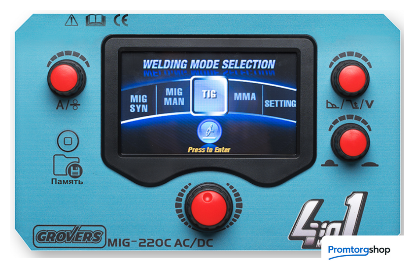 Назначение | MIG – 220C AC/DC – сварочный аппарат 4 в 1, который соединяет в себе режимы MIG DC, TIG AC/DC и MMA AC/DC. Это полностью сбалансированный аппарат с широчайшим спектром настроек. Будущее, которое наступило! MIG – 220C AC/DC имеет однокорпусное компактное исполнение. Прочный металлический каркас обеспечивает аппарату надежную защиту от механических повреждений, делая возможным работу в различных условиях. Все настройки отображаются на большом, ярком и четком ЖК дисплее, благодаря которому можно с легкостью настроить необходимые режимы для проведения работ. Меню удобное и понятное. Режим синергетики настраивается во всех трех видах сварки. Настройку аппарата также можно проводить через смартфон: аппарат оснащен Bluetooth модулем, который позволяет связать его с телефоном и проводить настройку через мобильное приложение. 9 ячеек памяти значительно сократят время настройки аппарата. В сварочный аппарат MIG – 220C AC/DC встроен PFC модуль, который позволяет аппарату работать от пониженного напряжения. Диапазон входного напряжения составляет 95-275В. В аппарат встроена интеллектуальная система охлаждения, которая предотвращает перегрев оборудования и продлевает время непрерывной работы. Помимо этого, возможность попадания пыли и металлической стружки при паузах в работе заметно уменьшается. Также снижается потребление электроэнергии. На задней крышке аппарата находятся два 6-ти миллиметровых штуцера для быстросъемного подключения газа и воздуха: к аппарату одновременно может быть подключен газ для MIG сварки и газ для TIG сварки. Подача проволоки осуществляется с помощью 2-роликового механизма, который плавно и равномерно доставляет проволоку в зону сварки без запутываний и деформаций. MIG – 220C AC/DC позволяет устанавливать 5-ти и 18-ти килограммовую катушку проволоки. GROVERS – выбор профессионалов! Интеллектуальная настройка режимов- Синергетика MIG/TIG AC-DC/MMA Регулировка частоты тока TIG AC 25-200Гц Дополнительное управление через приложение на телефоне APP Bluetooth Сохранение и выбор 9 ячеек памяти (JOB) Цифровая горелка TIG WP26 с регулировкой тока в комплекте! Аппарат сочетающий в себе полноценный MIG-MAG/TIG AC-DC Pulse/ MMA AC-DC Бесконтактный поджиг дуги TIG HF Входное сетевое напряжение в диапазоне 90-275В, активный PFC модуль Возможность подключения педали управления |