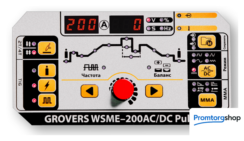 | Назначение | Уже в комплекте цифровая горелка WP26-4m с регулировкой тока и кожаной проставкой IP23-работа в суровых условиях Регулировка частоты 25-250Гц в режиме АС Продолжительный цикл сварки ПВ 60% при 40С на макс. токе 200А Интуитивно понятный дружественный интерфейс позволяет без особой подготовки, легко и просто, выбрать все параметры режима сварки и установить их требуемые значения Сохранение и выбор 9 ячеек памяти (JOB) Изменение (выбор) формы волны в режиме АС Треугольная/Синусоидальная/Прямоугольная/Трапецеидальная форма волны Пост продувка газа увеличена до 30сек! Стабильная сварка очень тонких металлов – сваривать можно даже соты от радиаторов, трубки кондиционеров! Обновленный Флагман среди аргонодуговых установок профессионального типа для сварки всех типов металлов! Теперь с регулировкой формы волны и сохранением параметров! Сварочный аппарат GROVERS WSME-200W AC DC Pulse принадлежит к моделям инновационных сварочных аппаратов нового поколения, разработанного на основе надёжной и испытанной инверторной технологии SOFT SWITCH. Исключительной особенностью является регулировка частоты 25-250Гц в режиме АС. GROVERS WSME-200W AC DC Pulse отличаются исключительно простым управлением, высокой функциональностью, отличными результатами сварки и большой продолжительностью включения.Идеален как для производства так и для профессионального сварщика где требуется Надежность, Высокая Мощность и Производительность! |