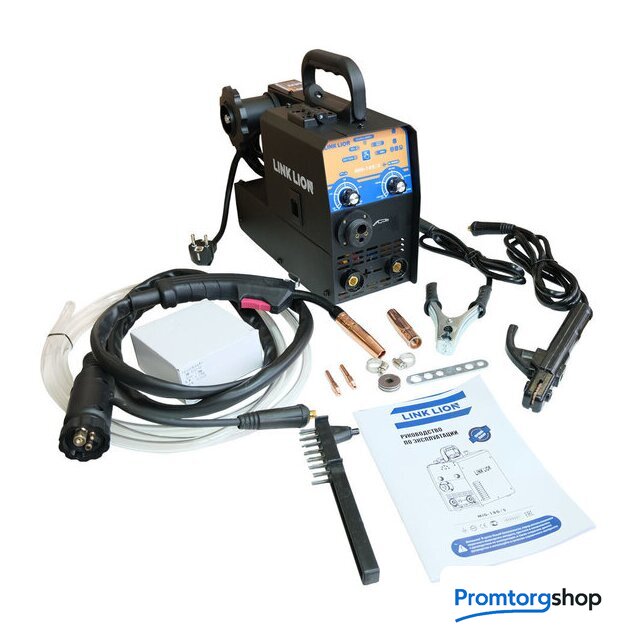 Комплект поставки | - сварочный аппарат со встроенной горелкой, длина 2 м.;- комплект ЗИП для полуавтоматической горелки;- электродный держатель с силовым кабелем, сечение 12 мм2, длина 1,8 м.;- кабель-масса с зажимом, сечение 12 мм2, длина 1,2 м.;- катушка самозащитной проволокой AWS E71T-GS д.1 мм., вес 0,25 кг.;- щетка по металлу;- газовый шланг;- инструкция-паспорт со списком гарантийных мастерских;- упаковка. |