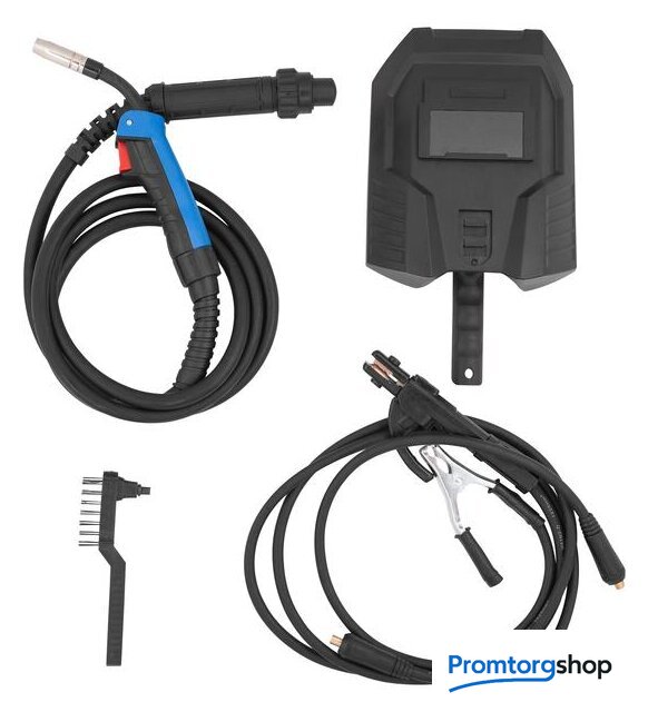 Комплект поставки | - сварочный щиток;- молоток-щетка;- горелка АК15 с евроразъемом 3м;- кабель заземления 1.2м;- 2 наконечника для сопла горелки (0.6 и 0.8 мм). |
