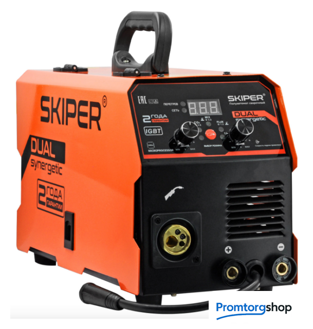 | Назначение | Аппарат инверторного типа для полуавтоматической сварки в среде защитного газа (MIG/MAG), сварки порошковой проволокой (FCAW) и ручной дуговой сварки (ММА), cварка неплавящимся электродом (TIG). Разработан специально для выполнения широкого круга задач. Преимущества: ГАРАНТИЯ 2 ГОДА!!! - Металлический механизм подачи проволоки; - 260А максимальный сварочный ток; - микропроцессорное управление; - 3-в-1 - полуавтоматическая сварка, ручная сварка электродами, cварка неплавящимся электродом; - cварочная горелка с евроразъемом в комплекте; - смена полярности для сварки в среде защитных газов или порошковой проволокой FLUX; - максимальный размер катушки с проволокой - 5 кг/200 мм; - сетевой кабель 2 м (без сетевой вилки). Внимание! Аппарат поставляется без вилки. В случае работы на максимальных токах, аппарат необходимо оснащать силовой однофазной вилкой 32А 230В (не входит в комплект). |