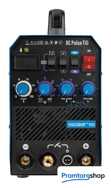 Комплект поставки | Источник сварочного тока;Горелка сварочная TIG 17 серии 3 метра;Электрододержатель с кабелем 2 метра;Клемма заземления с кабелем 2 метра |
