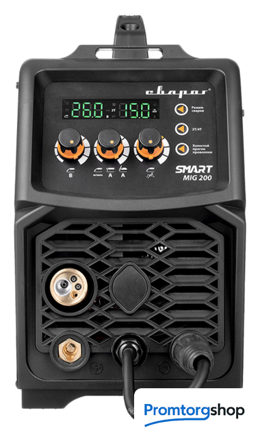 Сварочный ток | 20 — 200 А (MIG:30–200А, MMA:20–160А, TIG:20–180А) |