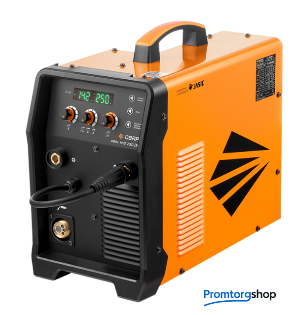| Комплект поставки | Сварочный аппарат REAL MIG 250 (N2A7) — 1 шт. Сварочная горелка TECH MS 15 (5 м) — 1 шт. Клемма заземления с кабелем (3 м) — 1 шт. Ролик подающий V Ø1,0/1,2 — 2 шт. Хомут 9–16 мм — 1 шт. Газовый рукав Ø8 (3 м) — 1 шт. Паспорт и руководство по эксплуатации — 1 комплект |