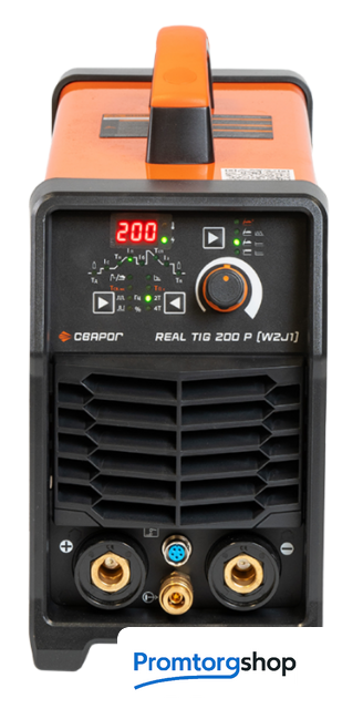 | Комплект поставки | Сварочный инверторный аппарат REAL TIG 200 P (W2J1)1 шт. Сварочная горелка WP–26 в сборе,4 м1 шт. Клемма заземления 200 А в сборе с кабелем ,3 м1 шт. Комплект ЗИП1 шт. Паспорт1 шт. Руководство по эксплуатации |