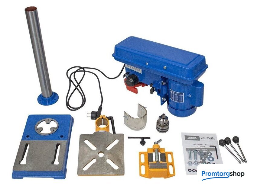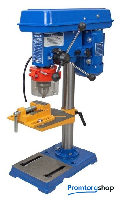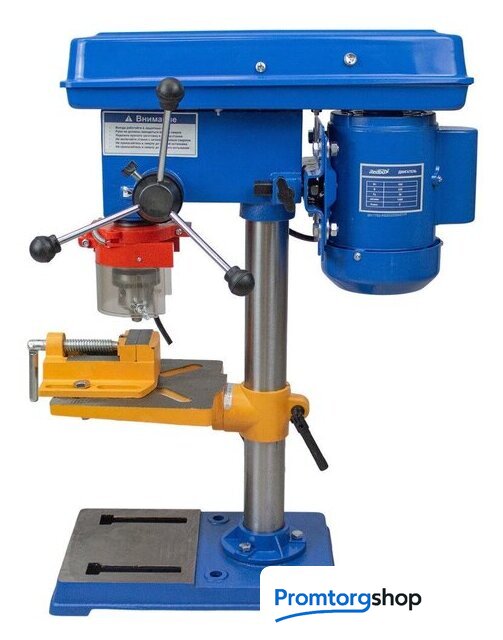 Комплект поставки | - Суппорт (корпус) с двигателем и ременной передачей в сборе- Основание/колонна с фланцем- Рабочий стол с хомутом крепления и затяжным болтом в сборе- Тиски в сборе/монтажный комплект- Патрон сверлильный/экран защитный- Рукоятка ворота с набалдашником- Руководство по эксплуатации- Упаковка |