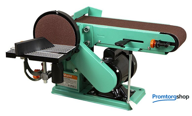 Комплект поставки | Станок, упор угловой в сборе, основание шлифовального диска, установочный винт основания диска, шлифовальный диск, шлифовальная лента (установлена), стол боковой в сборе, опорный стержень бокового стола, защитный кожух диска задний, защитный кожух диска передний с пылеотводом, ограничитель заготовки, резиновые ножки (4шт), шестигранный болт (комплект), шестигранный ключ (2шт), инструкция по эксплуатации. |